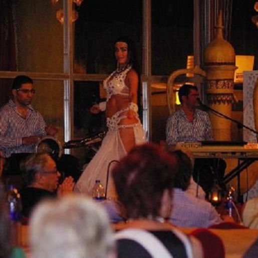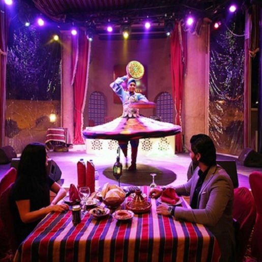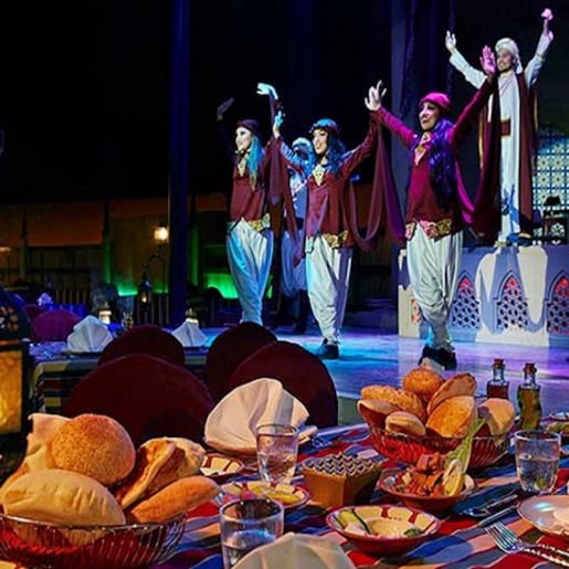 Dine outdoors in an open-air desert restaurant and enjoy belly dancing, a Tanoura dance show, and Dabka folkloric dance