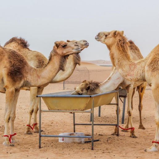 Continue your drive to reach an Arabian desert camp where you can experience a traditional welcome with gahwa (Arabic coffee) and local dates.
