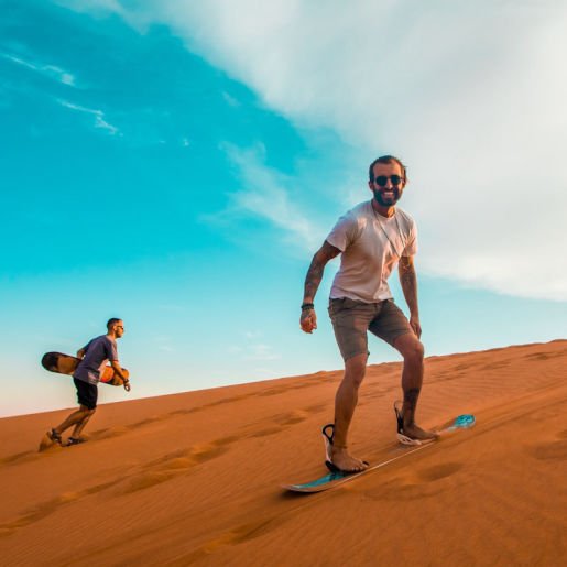 Enjoy desert dune bashing, camel riding, and sand boarding as part of your tour