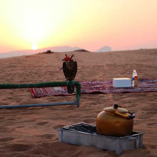Try traditional Arabic coffee and dates at an Arabian desert campsite