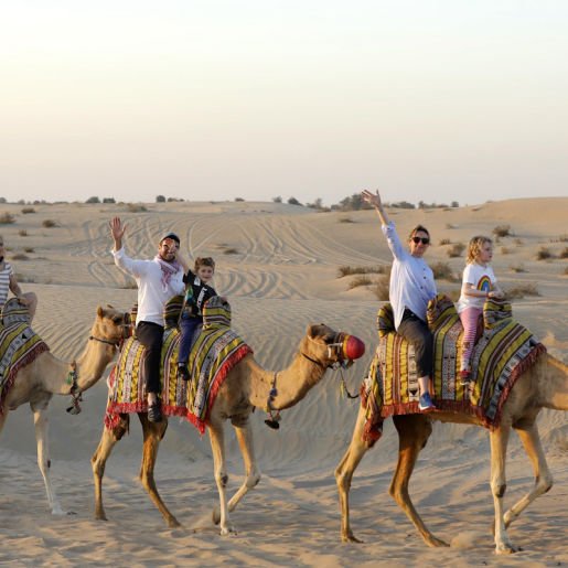 Experience an exciting camel ride witnessing the breathtaking desert scenery